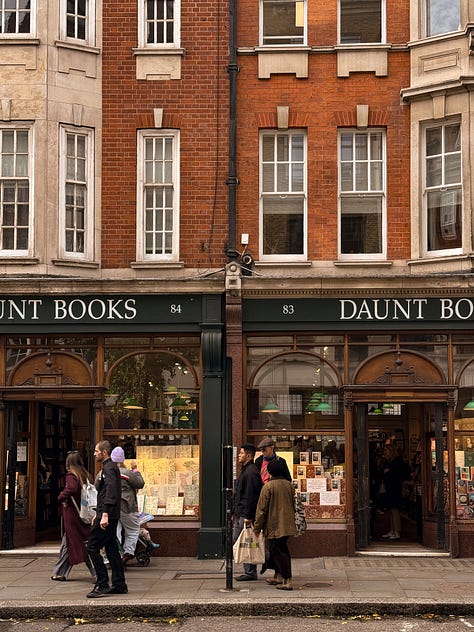 gobs of pub food, arsenal football game, booksbooksbooks, gallons of coffee and tea, tens of thousands of steps, a lot of old shit, and romance around every corner.